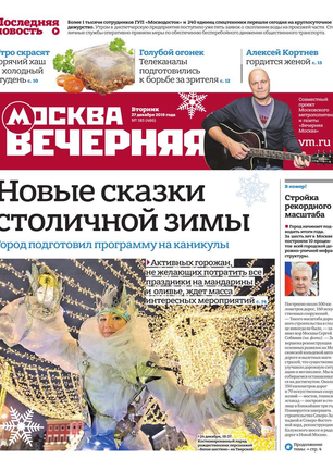 «Вечерняя Москва» — ежедневная российская вечерняя газета, старейшее из вечерних изданий в России, учрежденное в 1923 году. Выходит пять дней в неделю, кроме субботы и воскресенья. Отличается тем, что рассказывает о событиях еще не завершившегося дня. Оперативно освещает хронику и особенности жизни Москвы, охватывает все слои общества и большинство профессиональных и возрастных групп читателей.Издание представлено тремя выпусками – утренним ежедневным, вечерним (выходит три раза в неделю), еженедельным (выходит по четвергам).