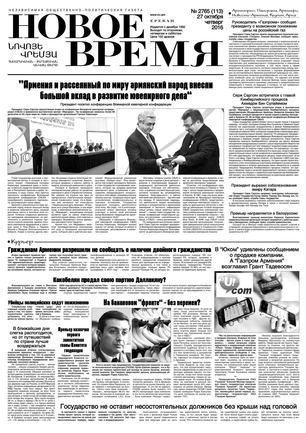 Общественно- политическая газета “Новое Время” была создана в 1992-м году и за 20 лет своего существования сумела заслужить среди армянских читателей право называться лучшей русскоязычной газетой в РА. Помимо сугубо политических тем издание обращается также к вопросам социальным, научным, культурным. Внимание уделяется и проблемам армянской диаспоры…