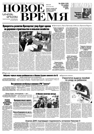 Общественно- политическая газета “Новое Время” была создана в 1992-м году и за 20 лет своего существования сумела заслужить среди армянских читателей право называться лучшей русскоязычной газетой в РА. Помимо сугубо политических тем издание обращается также к вопросам социальным, научным, культурным. Внимание уделяется и проблемам армянской диаспоры…